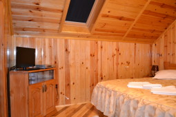 Camera este utilata si mobilata cu bun gust. Patul matrimonial este din lemn masiv, așternuturile sunt de calitate superioară. Televizoare cu receivere și internet wireless.